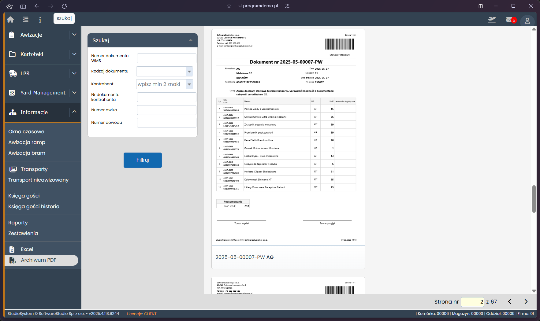 Poznaj zaawansowane systemy do zarządzania magazynem i logistyką w naszej wersji demo. Łatwo przetestujesz funkcjonalności programów WMS, VSS, czy TCS, które usprawnią Twoje procesy. Zobacz, jak nasze rozwiązania zwiększają wydajność i kontrolę nad operacjami w Twojej firmie.