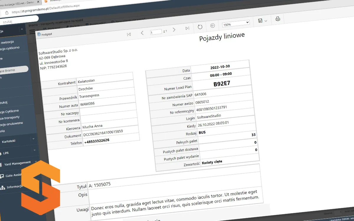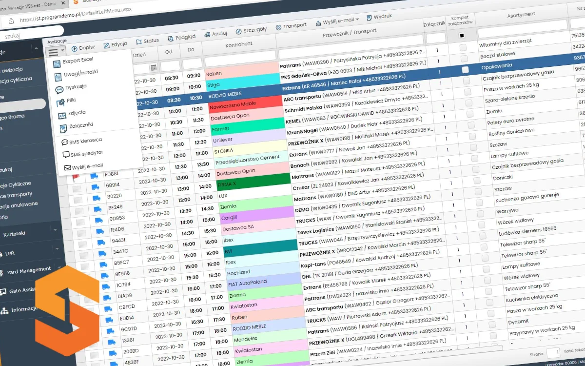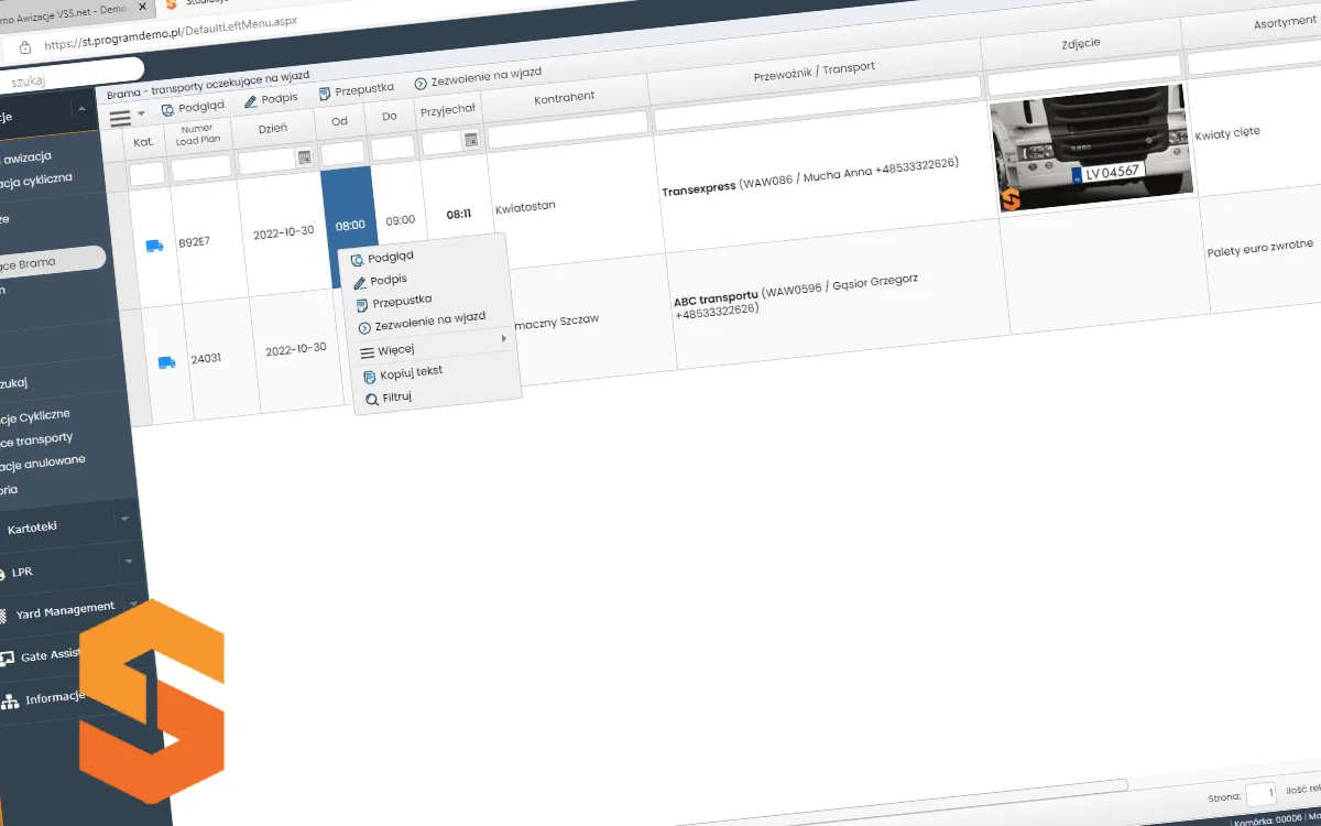 Oprogramowanie YMS do awizacji aut i dostaw Studio VSS.net