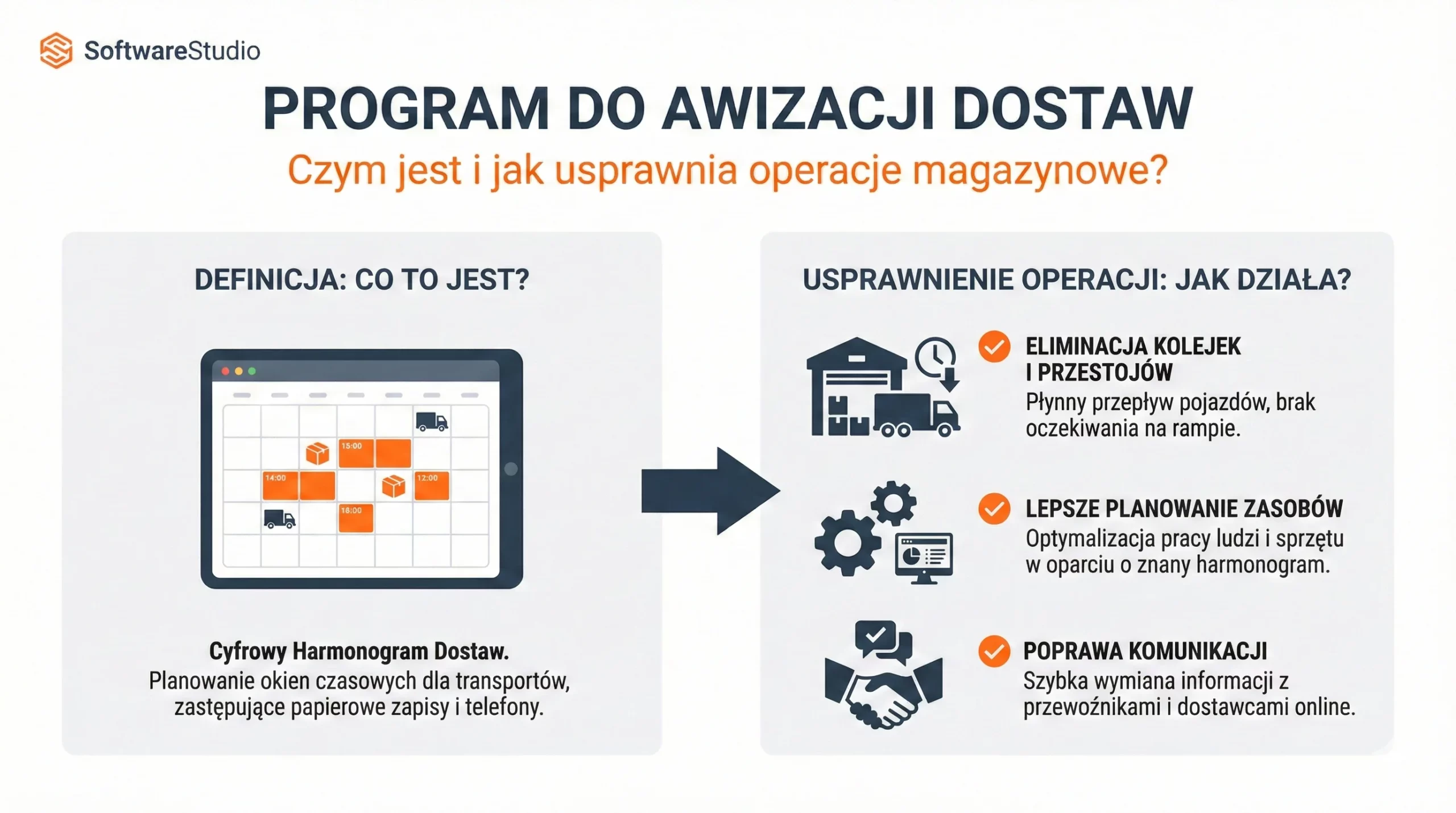 Program do awizacji dostaw VSS.net to kompleksowe narzędzie YMS, które rewolucjonizuje zarządzanie dostawami poprzez centralizację informacji i automatyzację procesów logistycznych. Poniższe zestawienie przedstawia główne obszary optymalizacji i konkretne korzyści, jakie przedsiębiorstwo osiąga po wdrożeniu systemu awizacyjnego w różnych aspektach działalności operacyjnej.