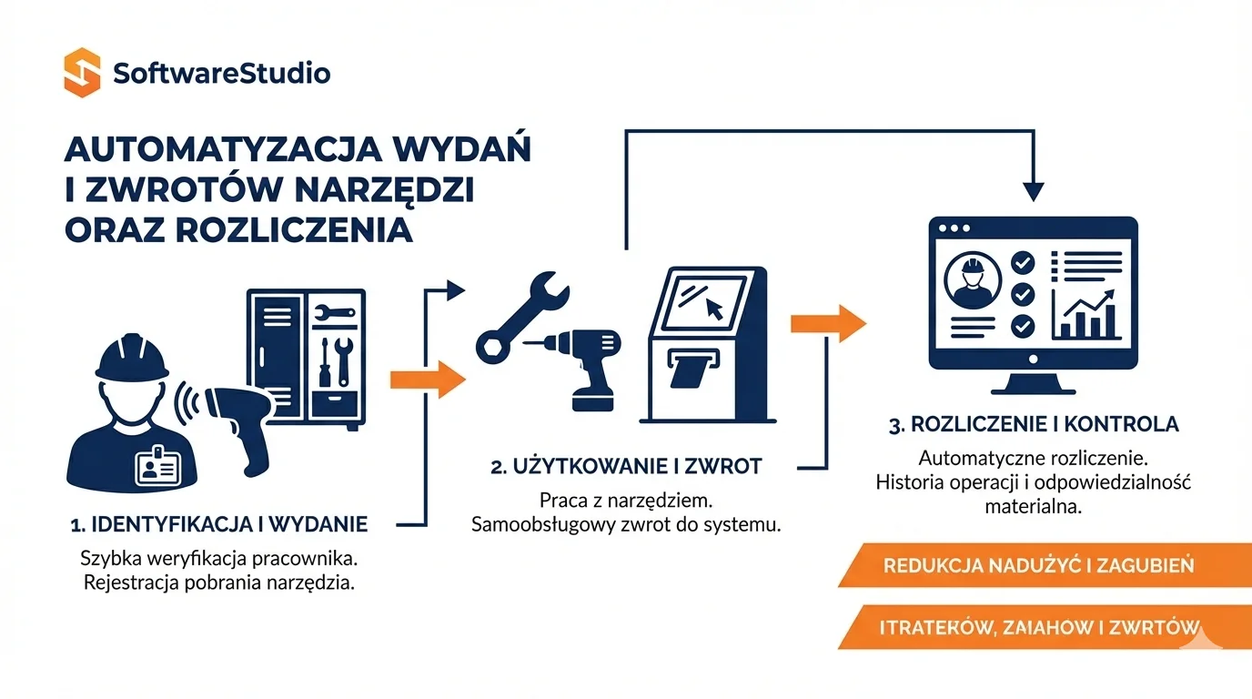 Schemat automatyzacji wydań i zwrotów narzędzi w oprogramowaniu Studio TCS.net od SoftwareStudio.