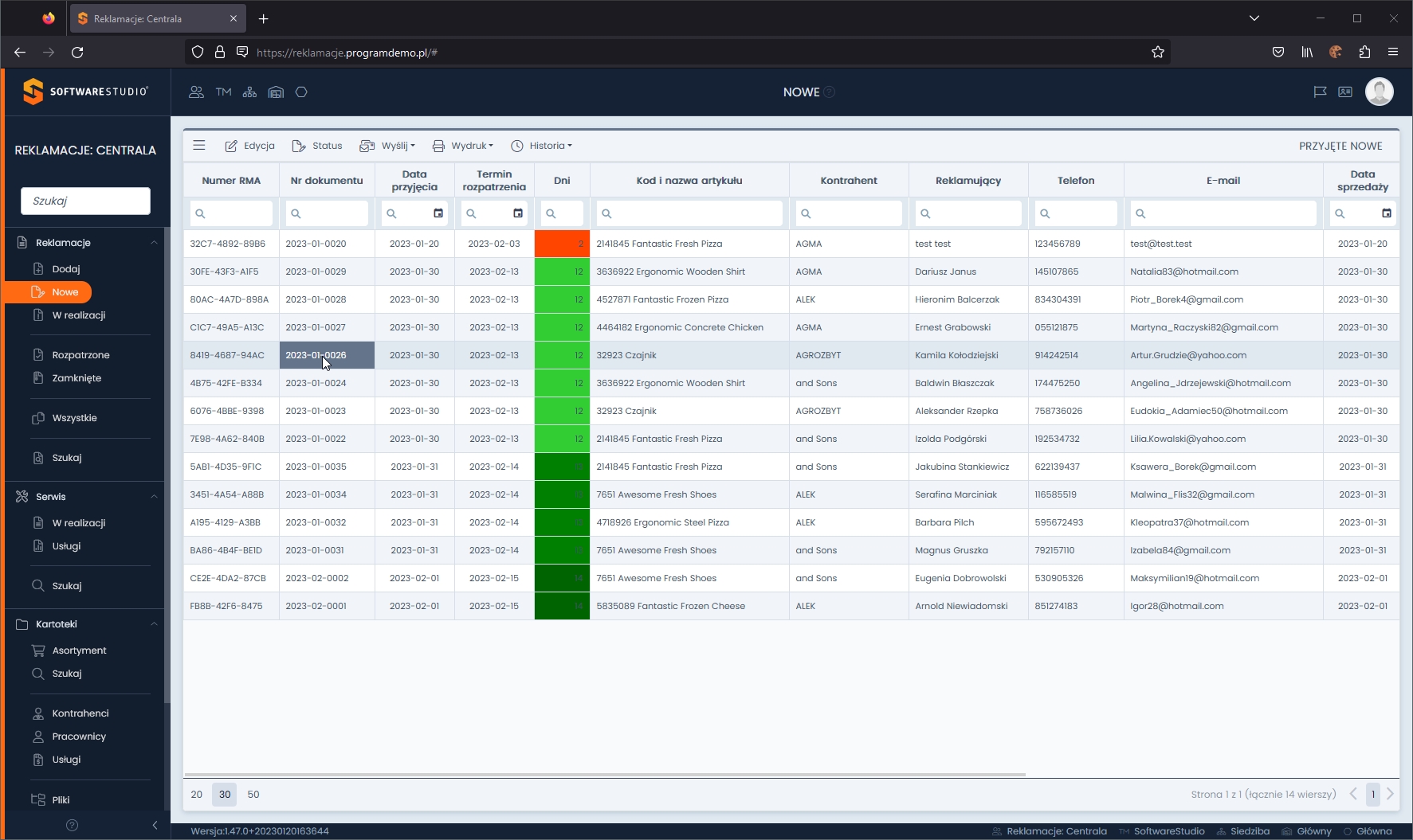 Proces reklamacji w systemie Studio RMA.net jest prosty i intuicyjny. Klienci mogą złożyć swoją reklamację on-line, korzystając z formularza reklamacyjnego dostępnego na stronie internetowej firmy. System umożliwia im również śledzenie statusu swojej reklamacji w czasie rzeczywistym, co znacząco podnosi poziom ich satysfakcji.
